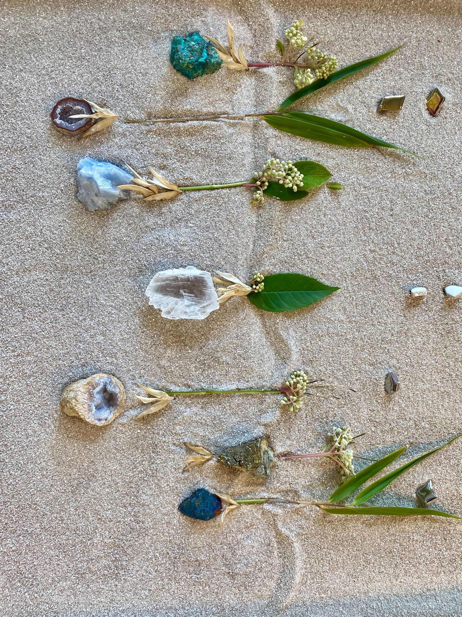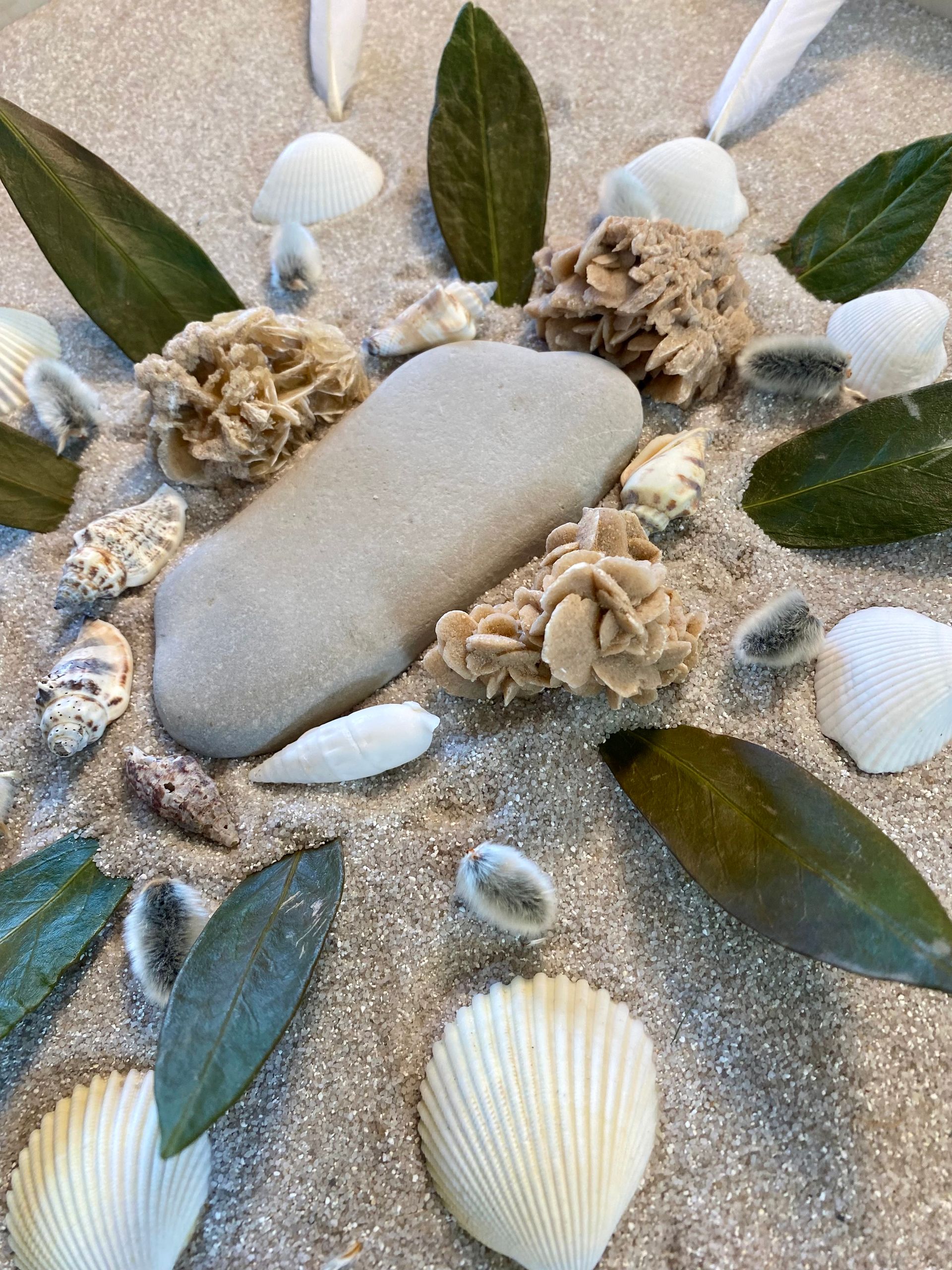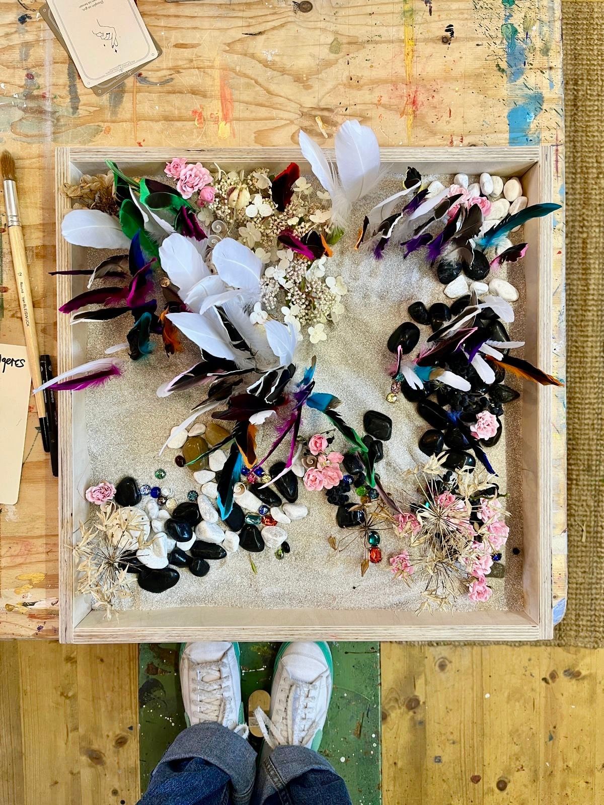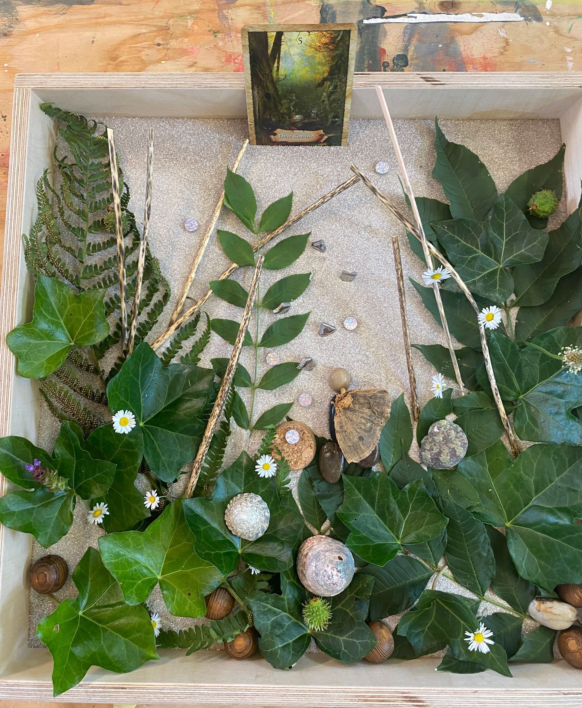 Gestaltung innerer Bilder und Themen mit wunderschönen Materialien im Sand.